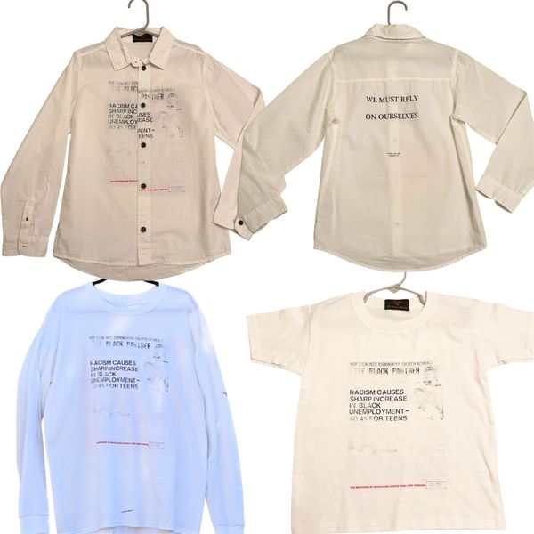 2T-XL available. White. Also available in long sleeve and button up shirt. Click the purchase button below to be directed to email for purchase.